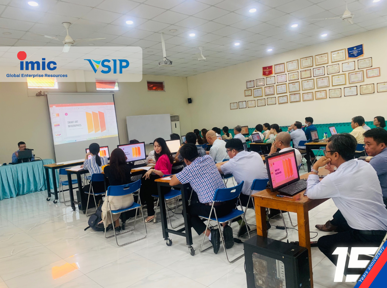 Vừa qua, IMIC Technology phối hợp cùng VSIP Việt Nam (Vietnam Singapore Industrial Park) đã tổ chức thành công khóa đào tạo PowerPoint chuyên nghiệp dành cho cán bộ, nhân viên khối văn phòng, với mục tiêu giúp đội ngũ nâng cao kỹ năng thiết kế, trình bày và truyền tải thông điệp hiệu quả trong môi trường doanh nghiệp hiện đại.