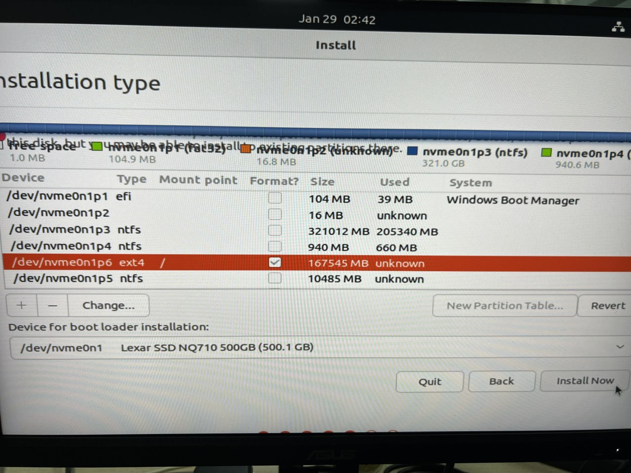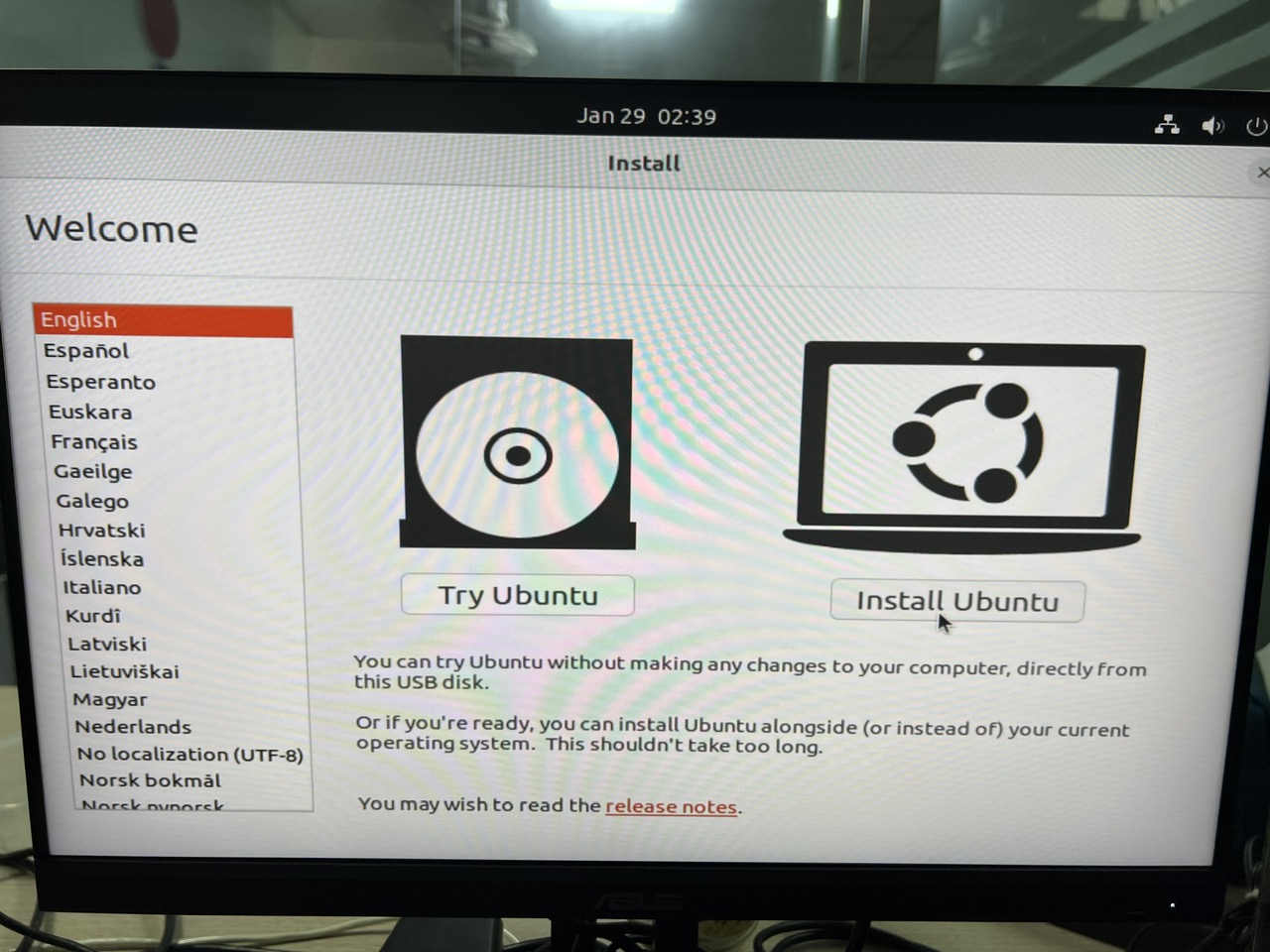 Bấm nút Install Ubuntu để chạy tiến trình cài đặt