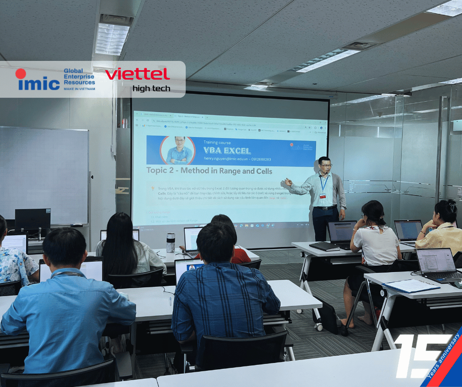 Trong bối cảnh doanh nghiệp ngày càng đẩy mạnh chuyển đổi số và tự động hóa quy trình, kỹ năng VBA Excel trở thành công cụ không thể thiếu để nâng cao năng suất và tối ưu hiệu quả công việc. Nhận thấy tầm quan trọng đó, IMIC Technology vinh dự đồng hành cùng Viettel HighTech tổ chức khóa đào tạo VBA Excel chuyên sâu dành cho đội ngũ nhân viên trong doanh nghiệp.