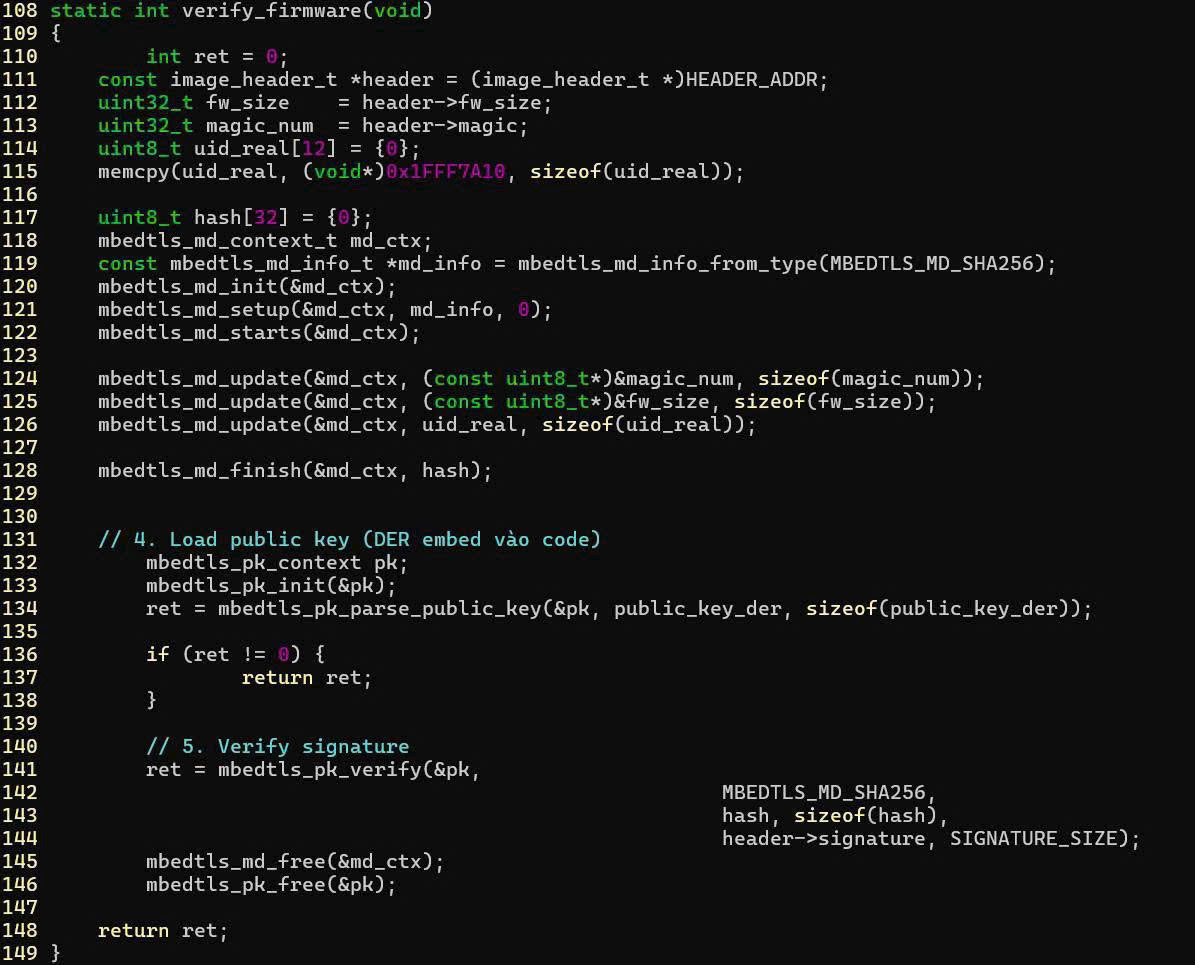 • Chỉ khi firmware được ký đúng bằng private key chuẩn, STM32 mới chấp nhận boot.