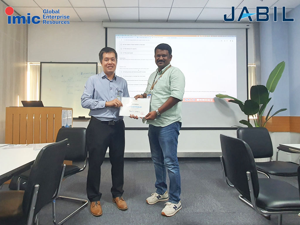 IMIC phối hợp cùng Jabil Việt Nam triển khai khóa đào tạo kỹ năng Quản lý Dự án theo chuẩn PMP (Project Management Professional), giúp đội ngũ cán bộ nhân viên nâng cao tư duy quản trị, làm chủ quy trình dự án, kiểm soát tiến độ – chi phí – rủi ro và đáp ứng tiêu chuẩn quốc tế PMI.