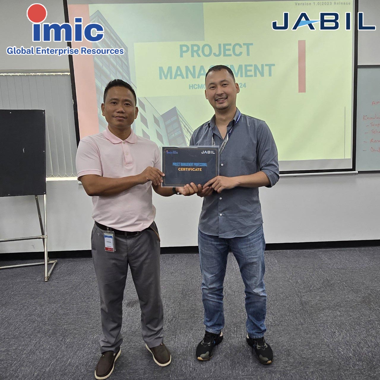 - Nhằm nâng cao năng lực quản lý dự án chuyên nghiệp theo chuẩn quốc tế, IMIC vinh dự đồng hành cùng Công ty Jabil Việt Nam trong chương trình đào tạo kỹ năng Quản lý Dự án – PMP (Project Management Professional) dành cho đội ngũ cán bộ, nhân viên chủ chốt.